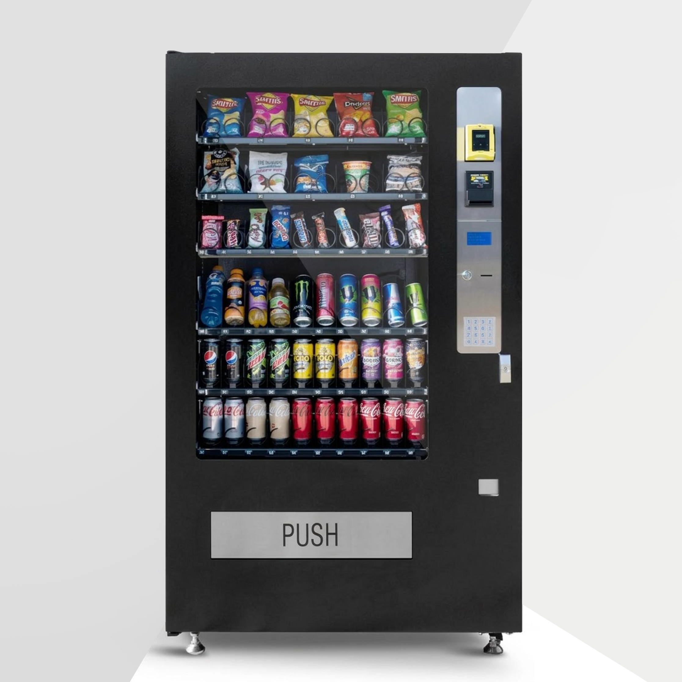 6 trays with all helixes, glass front door, cooled vending machine
