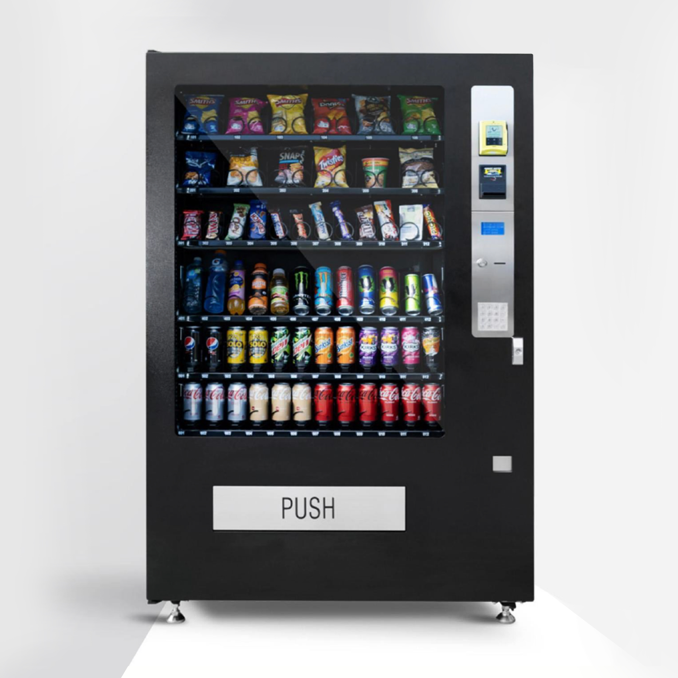 6 trays with all helixes, glass front door, cooled vending machine